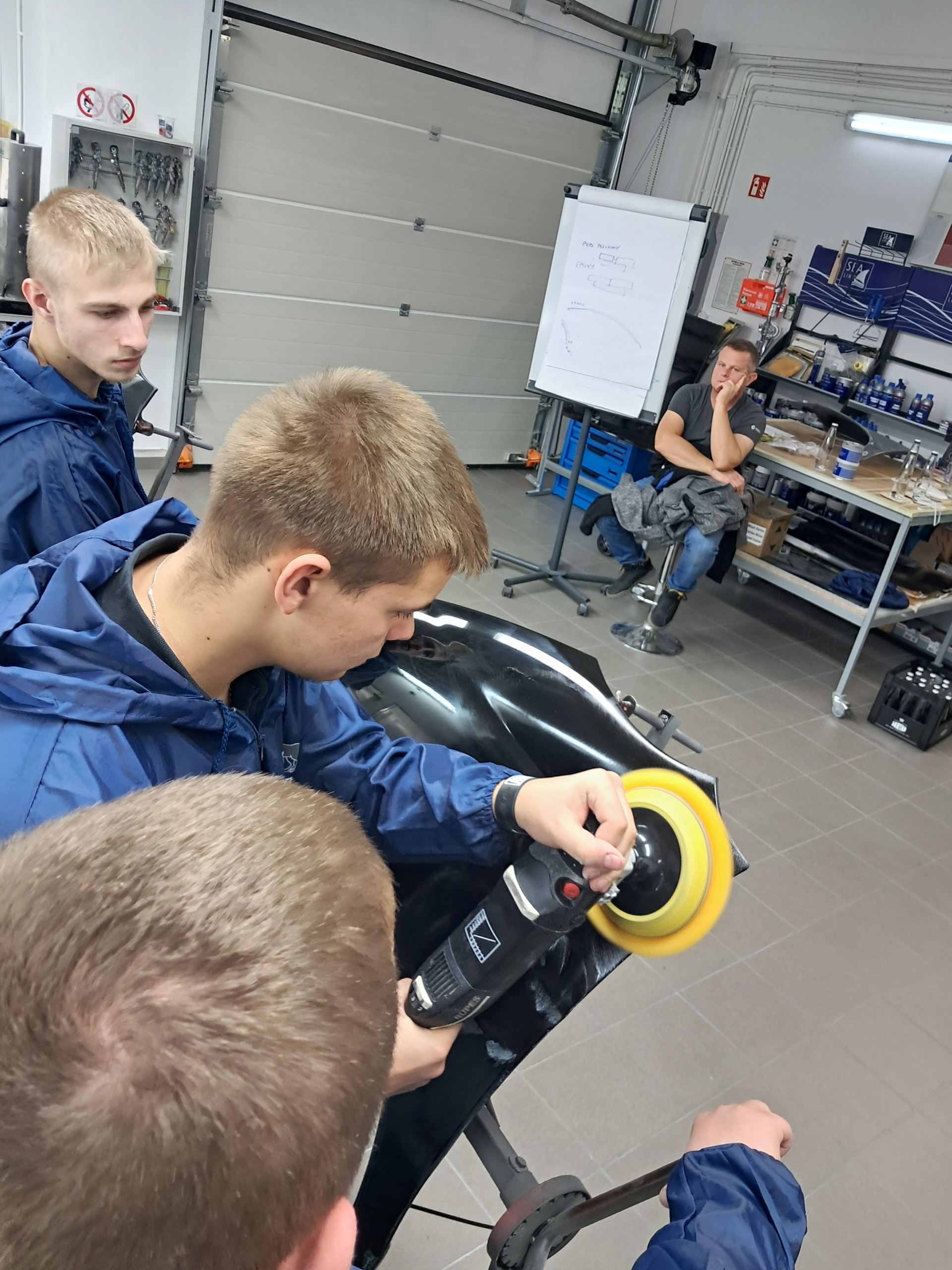 - Uczyli się usuwać defekty lakieru podczas sesji polerowania.